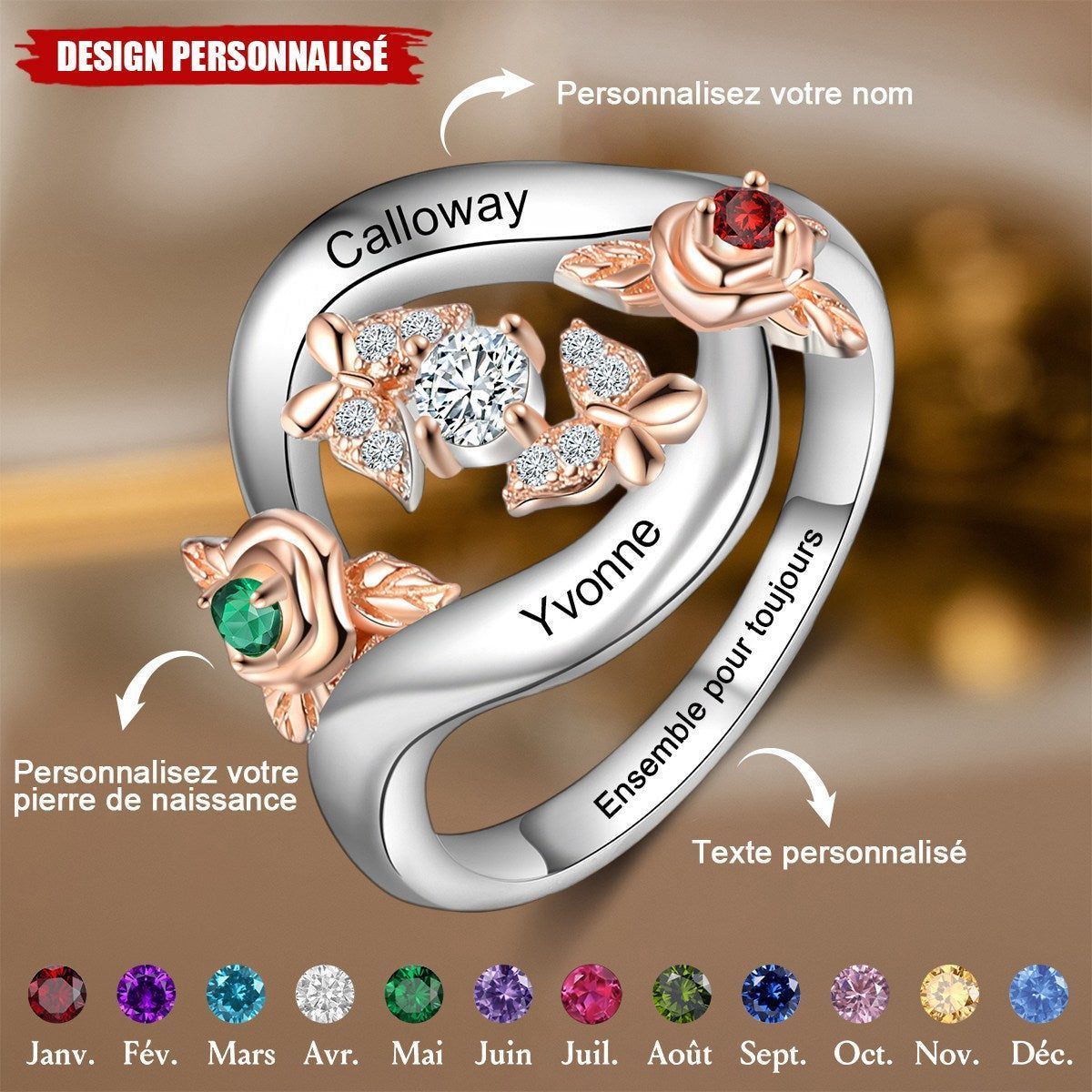 Personal isierter Rosen ring-Einzigartiges Geschenk für sie