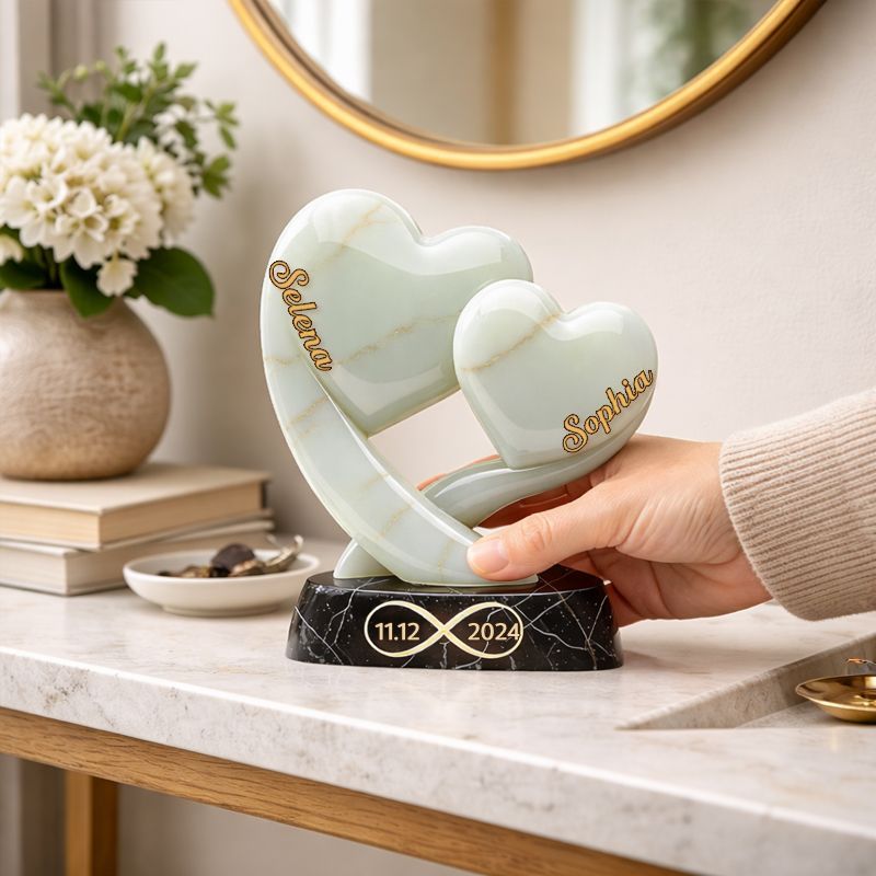 Unsere Liebe wird ewig währen – eine individuell gestaltete herzförmige Plakette für Paare.